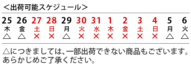 いつも当店をご愛顧いただき誠にありがとうございます。 誠に勝手ながら12/30(火)~1/4(日)は、年末・お正月に伴う休業日とさせていただきます。 (1/5(月)より通常営業となります。) 期間中、お客様にはご不便をお掛けしますが、何卒ご理解賜りますようお願い申し上げます。